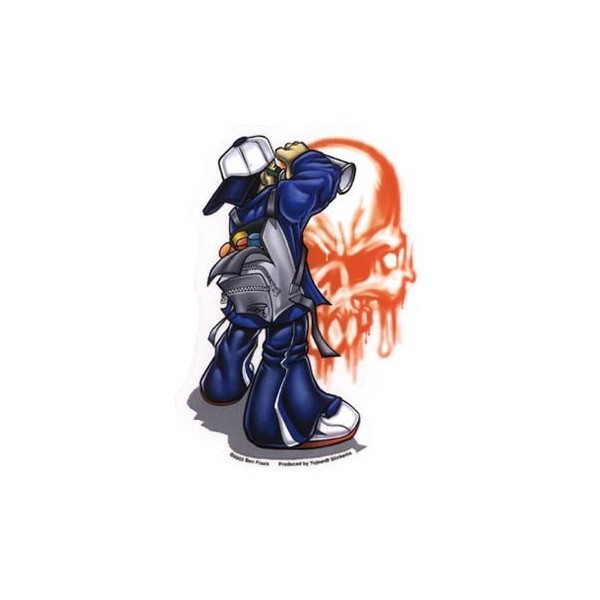 Sticker "Writerr" représentant un tagger en train de faire un tag skull, le parfait autocollant pour customiser votre voiture, hot rod, rat rod, volks rod, kustom, low rider, moto, chopper, bobber, casque, caisse à outil, servante d'atelier, casier, vestiaire, guitare, glacière ou pourquoi pas votre frigo?